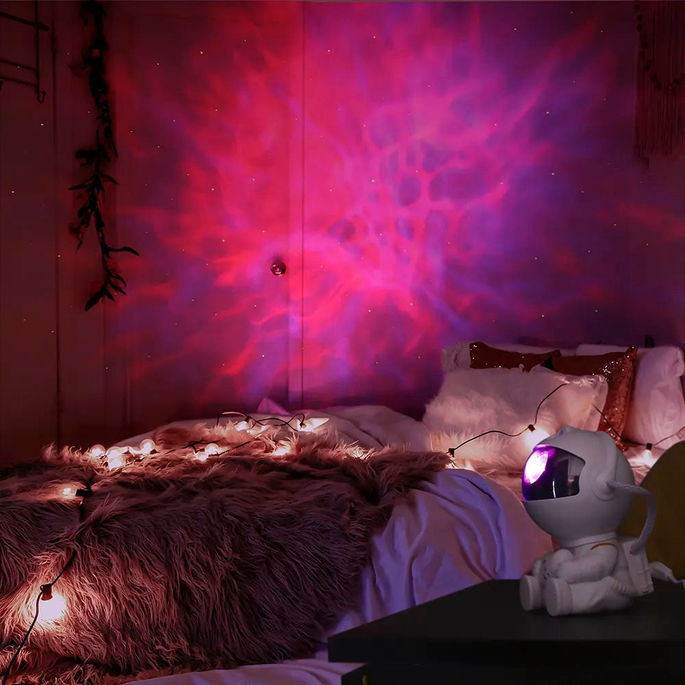 El proyector de nebulosas de astronauta tiene una variedad de combinaciones de colores, decoradas con luces de estrellas intermitentes, que se pueden cambiar por control remoto o botones. La Nebulosa Starlight de alta definición se proyecta en las paredes y el techo, haciéndote sentir como si estuvieras en la galaxia, creando un ambiente romántico y disfrutando de tu tiempo libre.